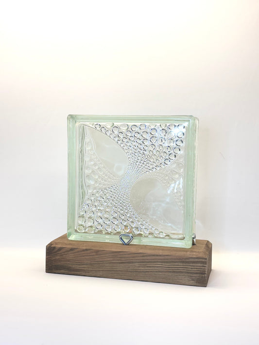 Tischlampe aus Vintage Glasbaustein hhhh - M